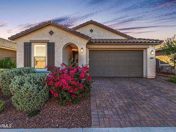 MOUNTAIN VIEWS AND A GORGEOUS POOL! Welcome to a home that perfectly blends style, comfort, and Arizona living at its best. From the moment you arrive, you'll be captivated by the charming curb appeal featuring lush, mature landscaping and a 3-car tandem garage with a paver driveway. Step inside to discover a bright, open floor plan filled with natural light, highlighted by plantation shutters, recessed lighting, and gorgeous wood-look tile throughout. The seamless great room design opens through multi-sliding doors to your private backyard oasis—complete with a covered patio, beautifully designed paver hardscape, sparkling pool, and breathtaking mountain views. Ideal for entertaining or relaxing in style. The gourmet kitchen is a true showstopper, showcasing stainless steel appliances, quartz countertops, a herringbone tile backsplash, elegant cabinetry with crown molding, a walk-in pantry, and a spacious island with breakfast bar seating. The serene primary suite features a spa-like ensuite bath with dual sinks and a generous walk-in closet. 3rd bedroom shows as den, but has walk in closet/window. Just needs doors to enclose. Solar lease helps with those energy bills, too. Don't miss the chance to make this incredible Verrado home yours! It's the total package!