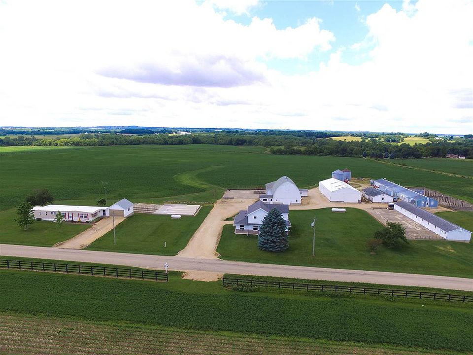 40 acre picture perfect farm. Beautiful, newly remodeled (both exterior and interior) 2 story, 3 BR 1.5 bath home located in country 6 miles NW of Freeport and on blacktop road. Renovated, large, spacious kitchen/dining room combination with granite counter tops and back splash, maple hardwood floor, 3'x6' island, 24 oak wood cabinets and sliding patio doors to block patio. Also offers main floor office and laundry room with numerous oak cabinets for storage. Four season room with beautiful 6' French glass doors and dimming can lights off of living room. Attached 1.5 stall garage. Exterior was remodeled with brick and high grade vinyl siding and windows (2009). New roof in '08. High efficiency furnace and AC in 2009. Home sits on 5 acres of homestead land with outbuildings in superb condition and secondary residence offering its own drive and privacy. Secondary residence is a manufactured home remodeled in 2005 with full clear span carpeted basement with new high efficiency furnace
