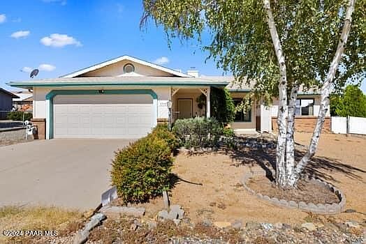 A LOVELY 3 BEDROOM 2 BATH HOME IN THE DESIRABLE UNIT 20 PRESCOTT VALLEY. FEATURES 1487 SQ FEET. 110001 SQ FOOT LOT SIDE RV PARKING POSSIBLE. FENCED BACK YARD 3 SECTION FOR FURRY FRIENDS.LARGE SHED IN BACK YARD. TILE AND LAMINATE THRU OUT HOME..2 CAR GARAGE.COVERED PATIO.MATURE TREE.NO HOA
