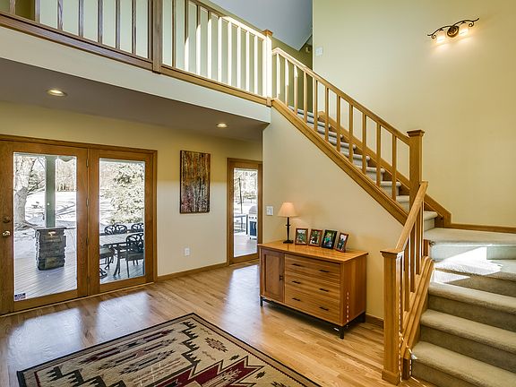 Updated home near BCC on cul-de-sac. Backs to a private 6-acre Park w/ playground & tennis courts. Truly special outdoor living space, vaulted ceilings, with lots of natural light throughout. Hardwood floors, large formal living room with wet bar & fireplace, and an extra family room with fireplace off the eat-in kitchen which features slab granite counters & stainless appliances. Master Suite with fireplace & 5-piece bath. Finished basement, storage, and workshop. Terrific neighborhood amenities.