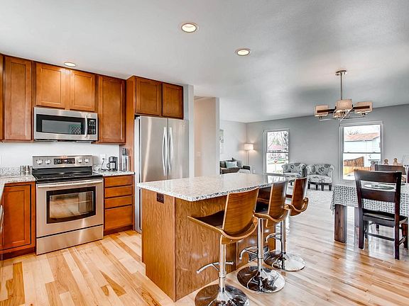 This inviting bi-level home with 4 bedrooms and 2 bathrooms is in a great location and has beautiful views. It has been recently updated with hardwood floors, stainless steel kitchen appliances and granite counter tops. The open floor plan is perfect for entertaining your guests both inside and outdoors! The covered deck overlooks a huge lot and has 180 degree mountain views! Situated minutes from Bear Creek Lake Park and Red Rocks, this location provides easy access to Hwy 285, C470 and I-70. Within the neighborhood, Weaver Hollow Park offers a pool with water slide, playground, and skate park!