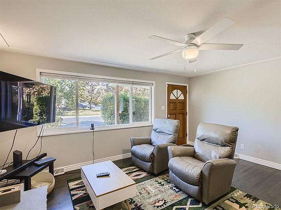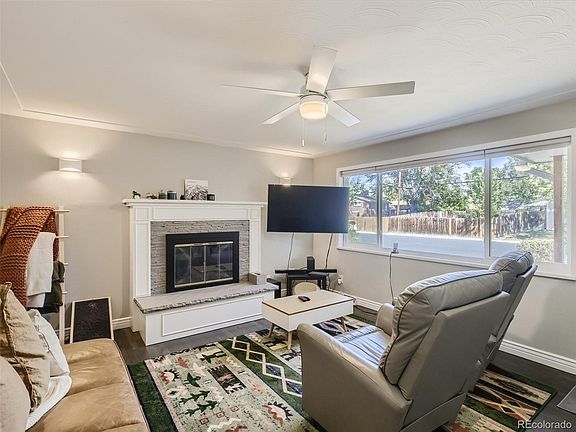 Beautifully updated ranch home with a finished basement, complete with expansive mountain views. This sunny 4 bedroom 4 bath home has 2 primary suites on the main level, each with its own full bath. The half bath—also on main level—is perfect for visitors. An updated kitchen with white cabinets, tile floor, stainless steel appliances, red oak (food safe) countertops, and under-cabinet lighting is spacious and bright. The finished basement has two large bedrooms and a full bath. It also has a large bonus room that serves multiple functions (currently being used for storage- office, gym, studio). Additional updates include updated 6 panel doors, newer windows/slider throughout, newer HVAC system, and updated heated bathroom flooring in the basement. Enjoy endless hot water with your newer tankless water heater. Recently refinished, real hardwood floors flow throughout the main level of the home. A wood burning fireplace sits on the main level, while an electric unit downstairs adds a cozy aspect to the finished basement. The fully fenced backyard is a private oasis with stunning front range views. 2 separate exterior storage sheds (one attached to the garage) provide plenty of additional storage room for all the toys. Original, fruiting apple and pear trees grow in the back yard. A triple-wide driveway provides room for lots of parking.