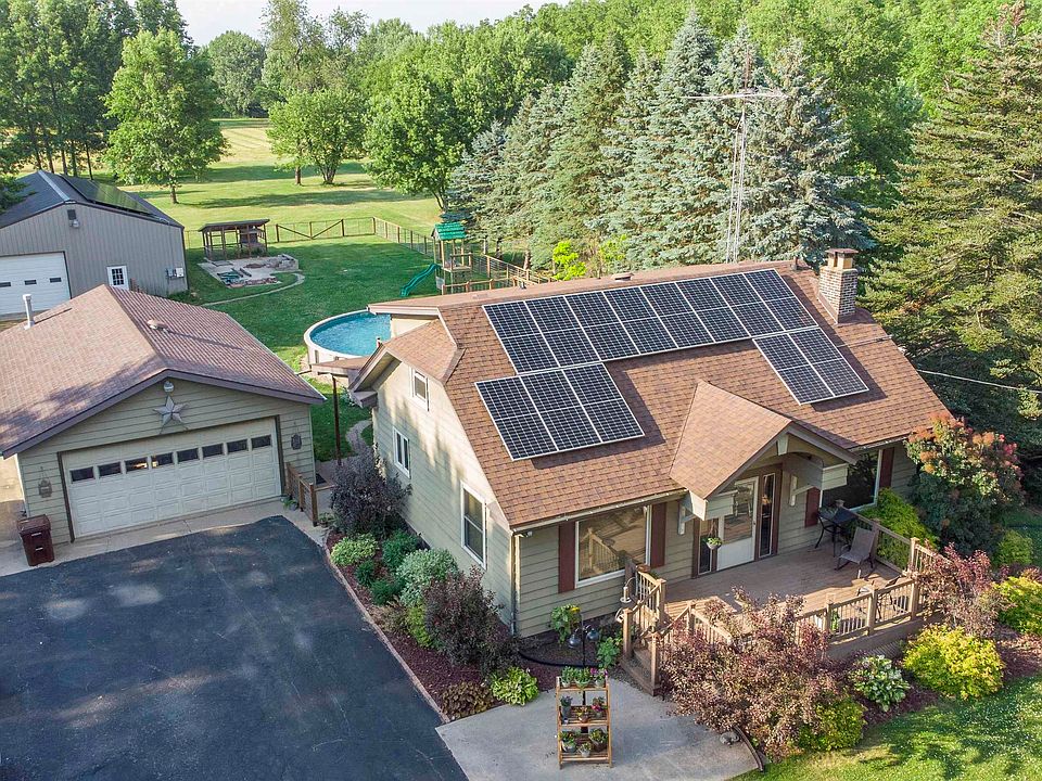 This is your new oasis! Fabulous 3 bedroom, 2 bath home with a newer custom kitchen. 1st floor bathroom remodeled in the past week! It sits on a lot of 3.34 acres. 2 car garage with new heater. 36 x 54 building with a concrete floor. Current owner built a 16 x 24 heated and insulated workshop within the building. The 30' above ground pool is only 3 years old. Back yard is newly fenced with 2-16' gates for easy access. Concrete pad for your travel trailer. There is a new water softener and new dishwasher. High electric bills are a thing of the past. Solar equipment is owned free and clear and transferable to the new buyer. System comes with a 25 year warranty. The current owners bill is $16 per month for the electric bill. Don't wait, call today.