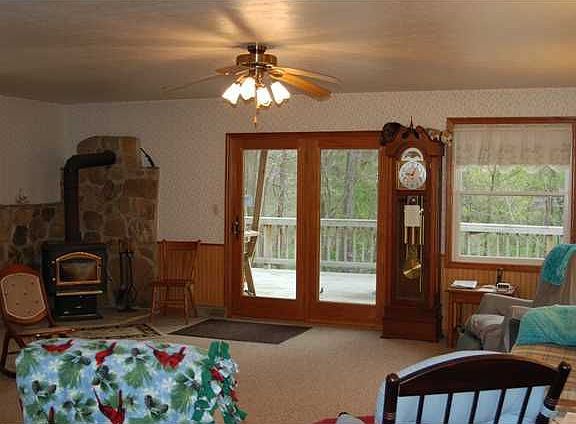Relax, bring your rockers for a peaceful set on the front porch. Or maybe have a party on the amazing deck overlooking a small bubbling creek. If you like peaceful surroundings and seclusion, welcome home. Everything from the open concept of the living room, dining room and kitchen to the two bedrooms that share a jack and jill bath. 2 full baths, carpeted laundry area, one car attached garage, a 32x40 insulated workshop with concrete floors and built in heater. All sitting on eleven plus acres.