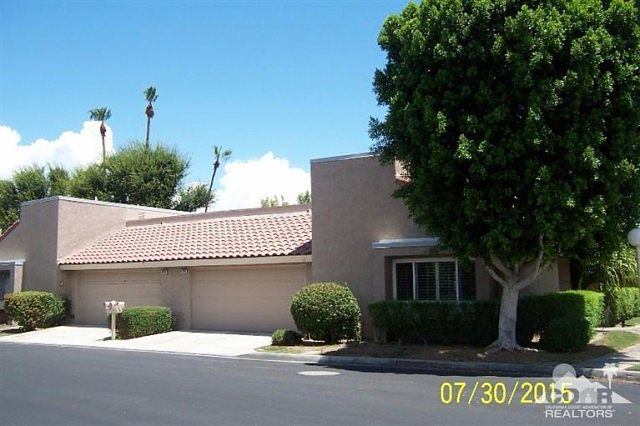 This is a Prime location in Palm Desert near theaters, shopping and restaurants. Charming, pristine condo with Plantation Shutters, tile throughout, Dual Pane Windows, garden window in the kitchen. Cathedral ceiling, marble counters in bathrooms. Direct access to double garage. Ceiling fans keep you comfortable all year round. The roof has electric temperature regulated blowers, new water heater and newer A/C unit. The HOA covers roof, basic cable, landscaping, pool/spa/tennis/gates. The pool and tennis courts are only a 3 minute walk from your condo.