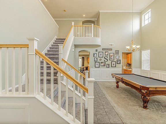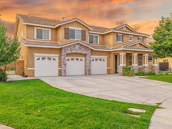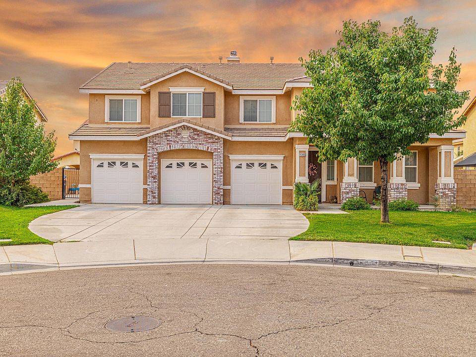 Spacious 3857sf home on a cul-de-sac with 5 bedrooms and 4 1/2 baths, tile roof and 3 car finished garage. There's one bedroom and 1 1/2 baths downstairs and 4 bedrooms and 3 baths upstairs. Also upstairs are 2 lofts and an office area. Downstairs the open kitchen has tile countertops, a large island, a butler's pantry, extensive cabinet space and stainless appliances and is open to the large family room which has a wide gas fireplace and many windows to brighten the area. Also, downstairs is a laundry room (with sink) that's so spacious it's divided into two areas for possible office or storage or extra refrigerator. The primary suite is huge with plenty of room for oversized furniture and the primary bathroom offers dual vanities, separate tub and shower and large walk-in closet. The backyard features a large covered patio the length of the house - great for entertaining!
