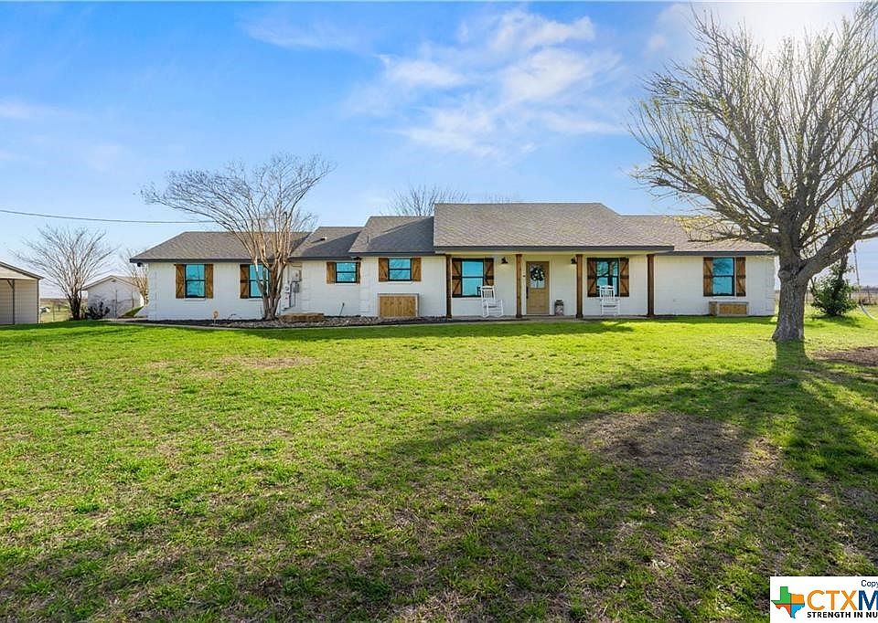 Beautiful ranch style home in Salado, TX!! This 4 bedroom and 3 bathroom home has grand views of the countryside surrounding it. The large living room features a tall beamed and vaulted ceiling with a floor to ceiling white stone, woodburning fireplace as the main focal point. The open concept enables natural flow between the living room and kitchen with tiled backsplash that brings a modern touch. The massive island has plenty of storage and seating, great for entertaining guests. A unique feature is the huge pantry with a coffee bar inside! It also has two large main bedrooms, both have their own ensuite bathrooms! Creative accents are featured throughout the home. The front dining room, currently used as an office adds a special touch with double doors and a deco wall feature. This beautiful home is complete with an in ground storm shelter, storage shed, and room for raising chickens! All of which is just minutes from I-35 corridor! Schedule your own personal showing today!