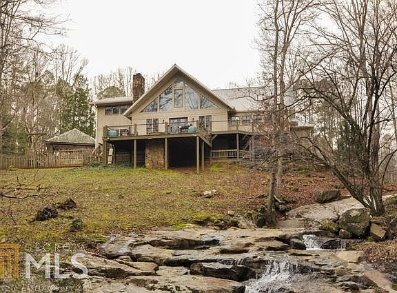 Privacy & serenity abound! Situated on 74+ acres, this home offers a perfect setting for relaxing & enjoying all that mother nature has to offer. The foyer & open dining room flow into the gourmet kitchen w/ marble island, prof stainless appliances & breakfast nook. The living room offers a stone fireplace & built-ins. The owner's suite is on the main level, along w/ an office, library, 1/2 bath, laundry room & mud room w/ walkway to the carport. There is a 2nd stairway off the mudroom leading upstairs to a bedroom. There are 2 additional bedrooms upstairs, along with 2 full baths, plus loft space & vaulted flex space w/floor to ceiling windows overlooking the shoals of the private creek! There is also a guest house and 3 barns for storage or workshop space!