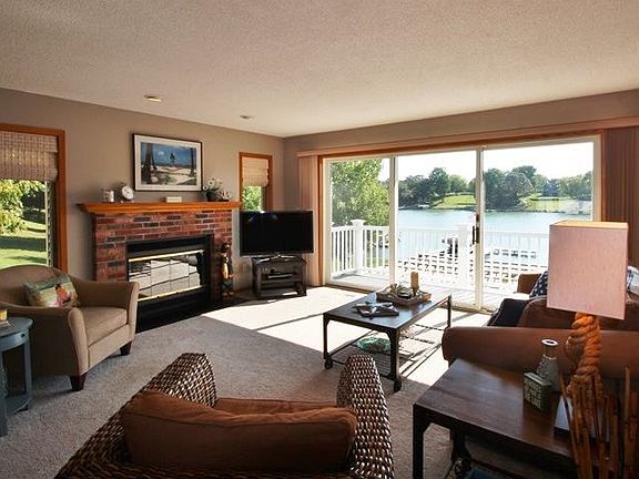 Entertainer's Dream Home with Spectacular Water Views!Get ready to entertain at the lake! Located on 2 WATERFRONT lots in Burchfield Cove, this home was designed for lakeside living-lots of glass and AMAZING water views, huge yard w/gently sloping lawn, expansive low-maintenance decking, and over 3000 sq ft of interior space. The floor plan flows easily, with an open kitchen/DR/LR with FP, Mstr Br w/full BA, HUGE media/rec room with second FP, 2 more baths, PLUS five spacious BRs (2 non-conforming). Super CLEAN & STYLISH, you'll be proud to share this classic w/o ranch with your guests. Does your dream list include a bunk room? Check! Huge LL family room with FP & wet bar? Check! Multiple areas for entertaining? Check! 3-car garage and storage? Check! Better start packing, this picture-perfect home is meticulously maintained and move-in ready.The spectacular lake views can be YOURS to enjoy every day!Newer appliances, decking and pergolas. Hot tub, furnishings and pontoon Negotiable.