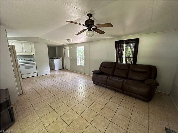 Spacious open living room to kitchen floor plan with ceramic tile in living room and kitchen. New floors in bedrooms. Tiled walk-in shower. Wooded lot in good location in Walkertown. Storage building stays!! Appliances including washer and dryer to stay. Great investment property has good rental history !