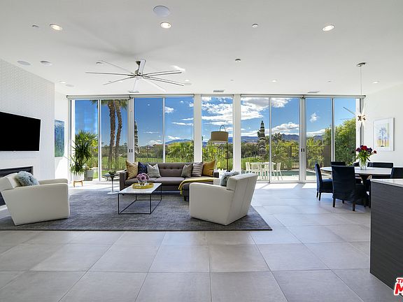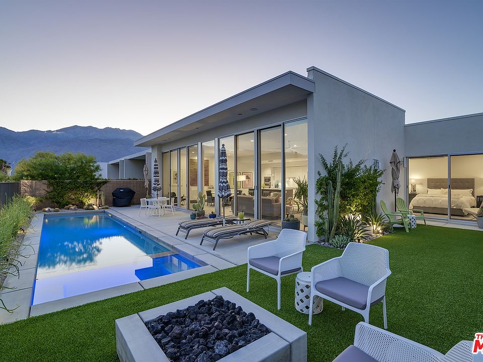 Exquisitely designed & upgraded Alta Verde Modern Panorama home awaits you! Fleetwood sliding glass doors frame the endless views of your private oasis, fairway & the San Jacinto Mountains. The open concept design provides an abundance of natural light & views. The home has three en-suites, powder & laundry room. The spacious master retreat offers direct access to the yard area, and a spa like bathroom with two separate vanity areas, oversized dual shower stall with Gruhe system & freestanding Aquabrass tub. The Chef's kitchen features custom cabinetry, Quartz counters, Thermador appliances & oversized entertainers island. Other upgraded features include: Control 4 system, Sound system with theatre sub-woofer, 78" Minka Aire Fan, 4k SunPower Solar Panel, Culligan whole house Potassium based water system, custom tile, wine chiller, paneled refrigerator/dish washer, saline pool, spa, fire pit & more! This home has it all. VACANT & READY FOR YOU TO MOVE IN! (Video/3d tours available).