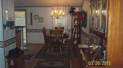This home is on a permanent foundation faced with block and brick, and sits on 17.9 wooded acres! There are 3 bedrooms and two baths with both a living room and a family room. The family room has a wood burning stove vented through the sealed fireplace which could be reversed if desired. The huge (49X33) barn has electric and a concrete floor. The 12X20 shed also has electric and a concrete floor. The lane that winds up to the house has new gravel.