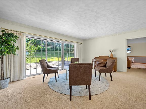 SALE PENDING - showing for back up offers. This property is a rare find, close to all amenities, yet on almost an acre and a half of land, plus adjacent to an open field and on a cul-de-sac, this is the best of country and city rolled into one. With only one owner, you can feel the love and care that has been put into this home. Large open eat-in kitchen with a family room and fireplace, with tons of natural light and great views of the surrounding countryside. The windows are almost all floor to ceiling. Great laundry/mud room area with a ½ bath leading in from the heated garage. Entertaining will be a breeze with all the space offered in the living area and dining room, with sliding doors leading out to the backyard patio. The home has a huge primary bedroom/bathroom suite with a walk in closet. And the two other large bedrooms share a bath. The full basement is a dreamer’s delight…it is up to you what to do with it! The bones are all here, she may need a few updates, but her beauty is easy to see. Property is an estate and is being sold AS IS.