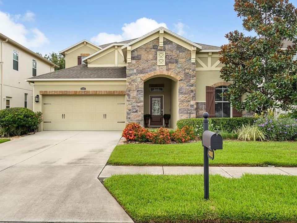 This home features 4 bedrooms, 3 bathrooms, Dining, Family Room and Bonus Room. The Kitchen has a multitude of cabinets, granite counter tops with breakfast bar, contrasting island and stainless steel appliances including double-oven a spectacular kitchen that truly is the heart of the home. The Master Suite is a private oasis. The Master Bath offers a garden tub, Roman Shower, vanity with dual sinks, and a separate shower. A spacious walk-in closet completes the package. The large leisure room with sliding glass doors lead you to a generous covered and screened outdoor living area. Upstairs is a HUGE Bonus Room with roomy closet, a 4th bedroom and full bath! Located in the gated village of Bellafield. Seven Oaks is a master-planned community featuring resort-style amenities, top rated schools and is close to shopping and restaurants.