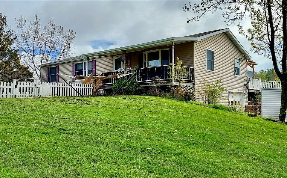 This well maintained 3-bed 2-bath Ranch Home on nearly 3 acres with full basement, large heated garage, many outbuildings and successful gardens has everything you need to start your hobby farm! Large master bedroom with plenty of closet space and attached full bathroom. Basement offers two bonus rooms, office, 1 bay garage and ample storage space. Detached garage and workshop with concrete floors, propane furnace, woodstove and full attic. New flooring on order for hallway and bedrooms to be installed before closing and new 21'x54" pool has been delivered and is awaiting installation.