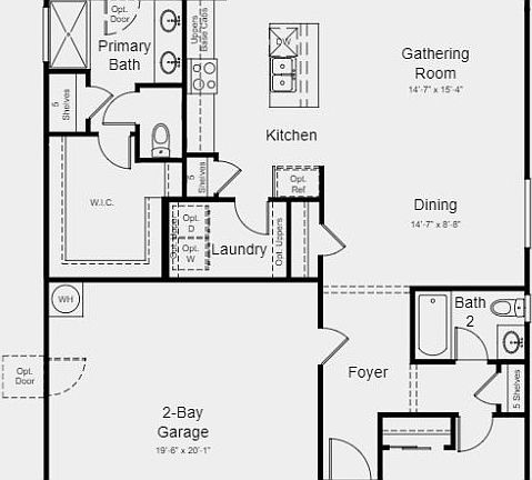 Built specifically for 55+ or better. Ready Now! ~ the Daffodil floor plan offers 1,295 square feet of living space, 2 beds, 2 baths, and a 2-bay garage. It is the smallest of the offerings at Ovation, yet beautifully crafted. The foyer takes you into the guest wing of the house with bedroom 2 and bath 2. As you proceed through the home, you are brought into the open kitchen, gathering room, and dining area, with access to the covered outdoor living. The primary suite has a nice sized walk-in closet and double vanities in the bathroom. Structural options added include: C elevation.