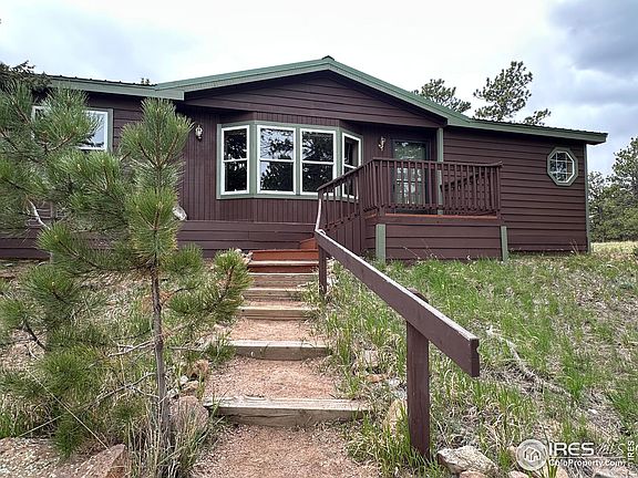 Wake up to panoramic sunrises overlooking the plains. Here is your opportunity just 37 minutes from north Ft Collins. Over 2,000 sq. ft. of living space all on one level on .86 acre. Home has wood siding and metal roof. Family room with woodstove off kitchen with island, separate dining and living room. Primary bedroom has 5 piece bath and attached office. 2nd and 3rd bedrooms with Jack & Jill bath. 4th bedroom next to 3rd bath and laundry room. Gentle sloping lot with scattered evergreens to filter the morning sunlight. 6' x 8' storage shed. NEW Furnace. Need a quick possession for your buyer, seller can accommodate. Special Assessment paid by seller. HOA fees pay for road, rec, trash, water & sewer.
