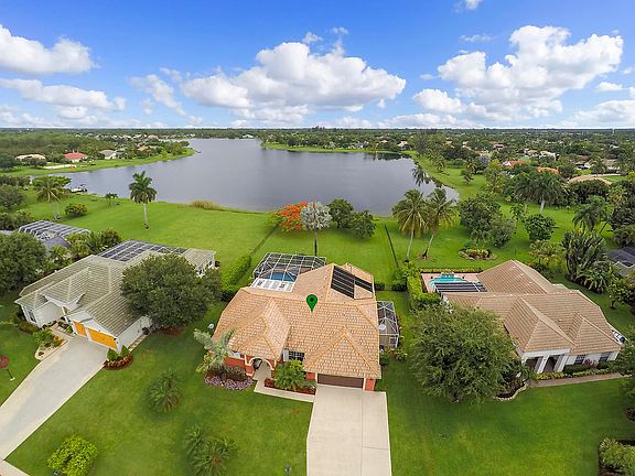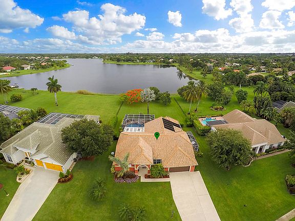 Beautiful home on a very serene lake for great fishing and use of paddle or row boat. Nicely updated kitchen, stainless steel appliances, and granite. Brand new tastefully done vinyl flooring, all 4 bedrooms are very large, 3 bath rooms one being a cabana bath that leads out to the resort like screened in pool and spa area with amazing long beautiful views of the amazing Legend Lake. accordion shutter that closes in all your patio furniture. Access to this recently resurfaced pool from master, living room, and family room and cabana bath. This one of the few communities that have large half acre to 1 acre lots with the feeling of the country yet close to everything. Close to major airports, roadways, beaches, restaurants, entertainment, polo and horse shows at equestrian capital