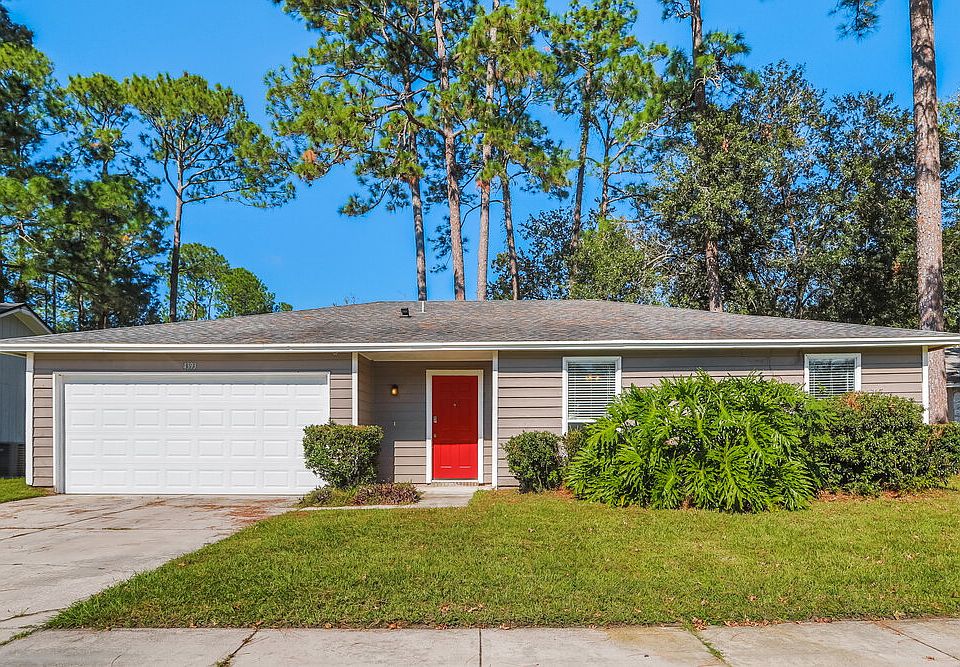 Please note, our homes are available on a first-come, first-serve basis and are not reserved until the lease is signed by all applicants and security deposits are collected. This home features Progress Smart Home - Progress Residential's smart home app, which allows you to control the home securely from any of your devices. Want to tour on your own? Click the "Self Tour" button on this home's RentProgress. This attractive single-level 3 bedroom, 2 bathroom home in Jacksonville, FL definitely stands out from it's neighbors! Boasting an inviting red front door, low-maintenance tile flooring throughout the open-concept floor plan with tall, vaulted ceilings. The sunken living room includes a fireplace and is open to the eat-in kitchen featuring a breakfast bar, stainless steel appliances, custom cabinetry with warm tones and upgraded solid surface counter tops. The master suite impresses with it's own private bathroom which includes a stylish vanity sink and a shower/tub combo. The exterior features include a 2-car garage, a huge backyard with lush landscaping, a privacy fence and a patio, perfect for grilling.