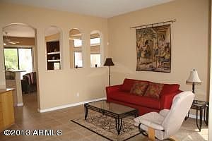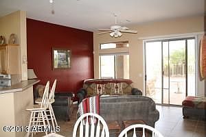 MOUNTAIN VIEWS! Experience the beauty of Gold Canyon and it's incredible sonoran desert feel. This home includes an open floorplan with 10 ft ceilings, beautiful tile flooring throughout, nice kitchen with raised panel cabinets, breakfast bar, and a built in microwave. Other features include, a nice size lot backing to a common area, and great views of the Superstition mountains from the backyard.