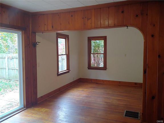 Welcome home to this secluded 3 bedroom, 1 bath Cape cod in Town of Onondaga. Hardwood floors in the living room and dining room. Cozy first floor bedroom. Brand new hot water tank, water purifier system only 3 years old, newer windows upstairs. Wood burning stove to keep you nice and warm on those cold wintry days, while keeping your heating costs down at he same time! Washer and dryer included in the partial basement. If you like privacy, this is the home for you!