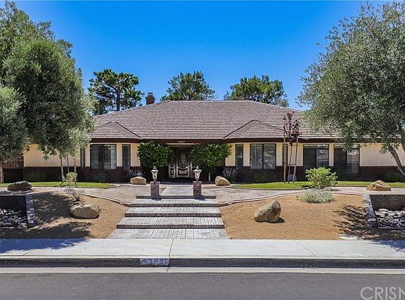 Welcome to Clark Court! One of AV's finest neighborhoods.This westside single story 4bd + 3.5 ba home offers a sprawling 3,514 sq feet of living space on a 14,958 sq. foot lot sits on a cul-de-sac. Tastefully landscaped/hardscape low maintenance front yard. Neutral color carpet & tile flooring throughout. Formal living room with built in book shelves & fireplace. Formal dining room, family room w/ fireplace & wet bar. ''Chefs delight'' kitchen with beautiful granite counter tops, multiple cabinets, eat/bar counter top & large subzero refrigerator included. Dining room. Split wing floor plan with a spacious bedroom on one end of the home to include built-in cabinet for closet, a mud room & 1/2 ba. First bedroom down hall has a full ba. attached. Large master bedroom with walk-in closet & ceiling fan. Master ba. with dual vanity sink, shower with 2 shower heads & garden tub. Backyard boasts full covered patio, mature landscape, BBQ & spa in as-is condition. Solar system owned & more!