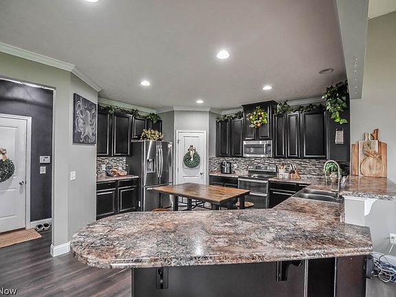 This Knights Crossing colonial is sure to impress with over 4200 square feet of living space and a spacious half acre lot! Built with energy efficiency in mind and a floor plan ideal for everyday living and entertaining. Gatherings are made easy by the multiple living areas that include a front living room and a family room with a cozy gas fireplace that opens to the kitchen complete with laminate counters, mosaic tile backsplash, stainless steel appliances and a pantry. Enjoy casual meals at the breakfast counter or in the sun filled morning room that has access to the patio and fully fenced backyard. The formal dining room is perfect for holidays and celebrations. Large families will appreciate 6 bedrooms, two of which are on the main floor with access to a full bath. Upstairs offers 4 more bedrooms and two full baths including the master suite with a walk-in closet and en-suite. There's also a bonus room that could easily be used as another bedroom and a 2nd floor laundry that adds the ultimate convenience! Last but not least is the lower level rec room for games and movies and a two flex rooms that adds versatile space to suit your needs. Recent improvements include LVT flooring and lighting throughout the entire first floor, fresh paint, new tile flooring in all bathrooms, built-in shelving in the family room and trim work throughout. With an attached two-car garage, cul-de-sac setting, and prime location served by Perry Local schools, this home has it all. Schedule your tour today!
