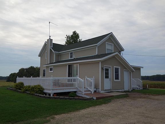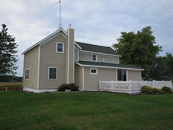 Tranquility abounds with this nicely updated farmhouse on 1.5 acres & surrounded by farmland & nature's beauty. Spacious kitchen w/ handcrafted cabinets, large living room & large main floor mMBR w/ walk-in closet, 3 beds & full bath up. Large rear deck. Updated windows, flooring, siding, electrical, plumbing, roofing and insulation. Reverse osmosis system, kitchen appliances stay. 2 stall garage, 30x40 barn, 20x40 outbuilding. 11 yr old outside woodburner features brand new pump & new blower ( 2015). Owner has used efficient woodburner for 11 yrs, has not used furnace during that time. Generator hookup, 200 AMP electric. MBR is sub-floor only, buyer can bring their own flooring of choice after closing. The setting is superb, those who love nature or want a hobby farm will love this home!
