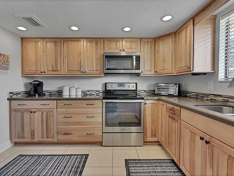 Charming 3/2, brand new kitchen, newer bathrooms, 2 car garage! Great room is vaulted and oversized w/ easy low maintenance wood tile floors and a beautiful stone fireplace to create a quaint and warm ambiance! Gorgeous kitchen features hickory cabinets w/ dovetail joints & soft-close doors/drawers, pull out trash, deep drawers for pots & pans, and updated appliances! Completely updated hall bath with white vanity, quartz countertops, new tub, tile and toilet! Master suite has private door to backyard and features 2 walk-in closets, walk-in shower, & updated bath w/ new vanity, quartz countertops, toilet, & fixtures. Newer carpet in all bedrooms! Screened in porch overlooks huge fully fenced backyard w/ shed. Walking distance to Mayo and short drive to the beach. Will allow pets with pet deposit