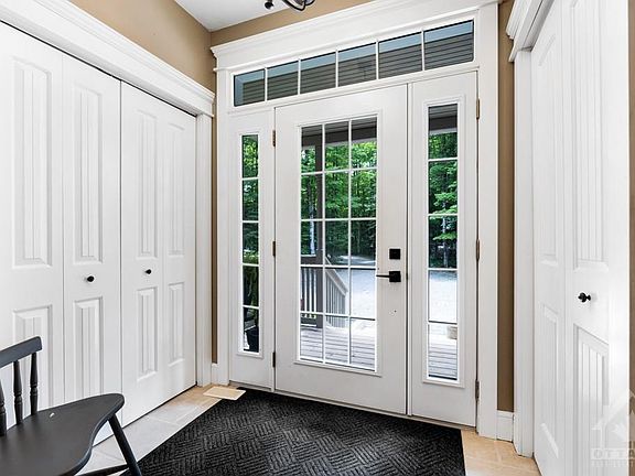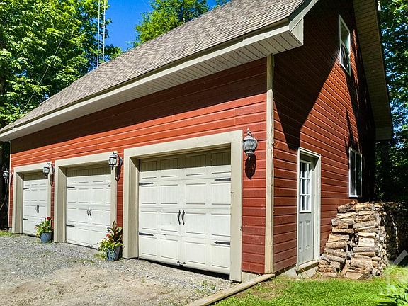 On 7 enchanting woodland acres, awe-inspiring home offers a floor plan your family will love. All through the 3bed, 3bath home light and luxury flow from room to room. Foyer has attractive porcelain flooring and two closets. Livingroom woodstove framed by large windows overlooking the best of nature. Open to livingroom and kitchen, diningroom has patio doors to upper deck. Custom kitchen with granite countertop, porcelain floor and peninsula breakfast bar. Convenient main floor bedroom with deep closet. Main 4-pc bathroom marble vanity and soaker tub. Upstairs, your primary suite has two walk-in closets and spa ensuite with lovely arched windows, 2-sink granite vanity and stone surround shower. Third bedroom vaulted ceiling plus 4-pc granite ensuite with soaker tub/shower. Lower level familyroom walkout to deck, office, gym and laundry centre. Oversized 3-car garage with loft. Fenced yard. Play fort for kids or, garden shed. Underground wiring to home. Starlink hispeed. 20mins Almonte.