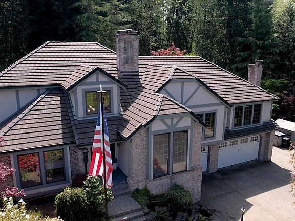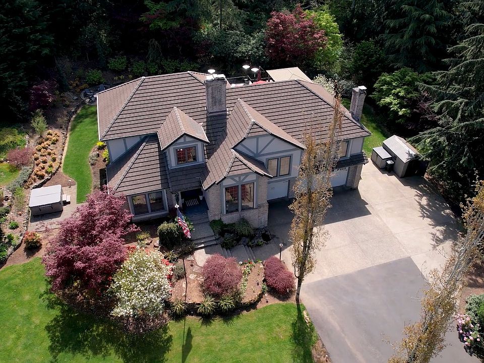 Offered at a new price. Beautifully maintained 4,349 sq ft home set on 5.73 private acres across two separate tax lots. The main tax lot includes approximately 4.3 acres surrounding the home, while the second tax lot consists of approximately 1.43 acres, separated by an auxiliary gravel road and offering cleared areas suitable for a future shop or additional structures. Built in 1992, this home offers solid construction and classic Northwest character with a spacious, flexible layout ideal for entertaining, working from home, or multigenerational living. Inside, enjoy an open floor plan with high ceilings, large windows, multiple living areas, four bedrooms, and three and a half bathrooms, plus two wood-burning fireplaces. The kitchen features granite countertops, tile flooring, stainless-steel appliances, including refrigerator, double convection oven, dishwasher, disposal, free-standing range, built-in ice maker, and a large granite island. The expansive primary suite includes large windows, a walk-out patio with hot tub access, and a spa-like bath with soaking tub, walk-in shower, double vanities, and generous closet space. The fully finished lower level offers a full bathroom, partial kitchen, king-size Murphy bed, and abundant storage, ideal for guests or extended living. Additional features include double-pane windows, garage door opener, laundry space with washer and dryer, built-in cupboards and shelving, and a built-in granite desktop for office or hobby use. Outside, approximately 2 acres of manicured landscaping include sprinkler irrigation, water feature, fire pit, hot tub, pond views, and a an Ipe hardwood deck. The property is fully fenced, including a private security gate up front, RV parking, long driveway, and three-car attached garage. Additional highlights include central AC, forced-air gas heat, public water, public sewer, gas hot water, and an original concrete roof that has been professionally cleaned and resealed. Schedule your showing today!