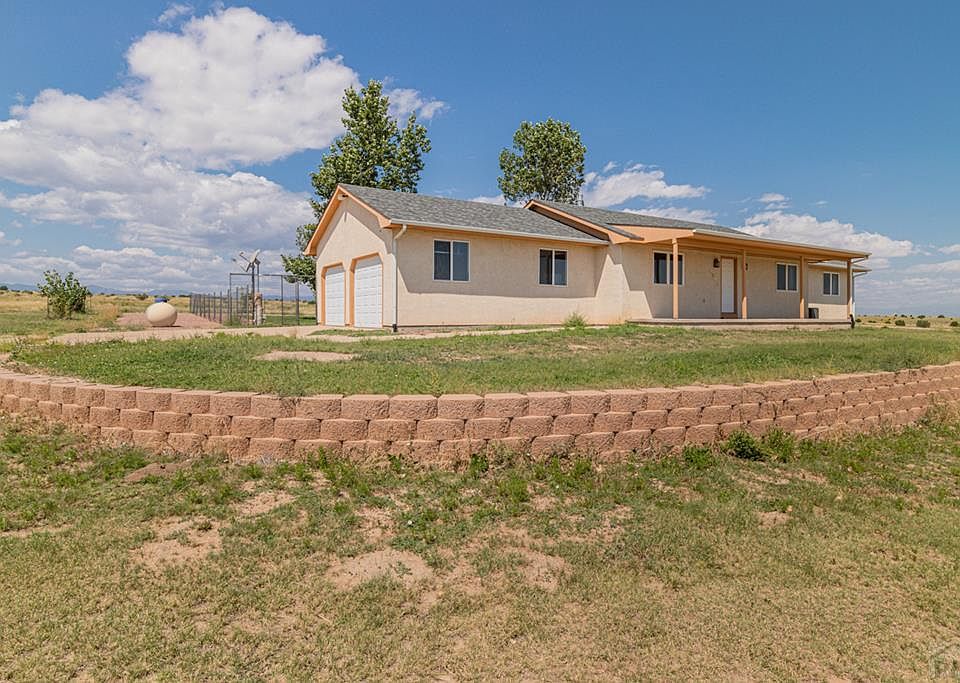Beautiful mountain views in this 3 bed and 2 bath home with nice tile kitchen, dining and living area makes maintaining easy! Big bedrooms, Nice living area with gas log fireplace and formal dining area with beautiful mountain view...Let the unfinished basement be your future project!! 2x4 Construction. Private well with a 1,000 gallon cistern!! . Very nice 42X48 out building/ work shop with cement flooring 220 volt service and own electrical box. Roof just replace!! Mountain views to the West and city lights to the East. 40 acres and private country home just 15 minutes from Pueblo