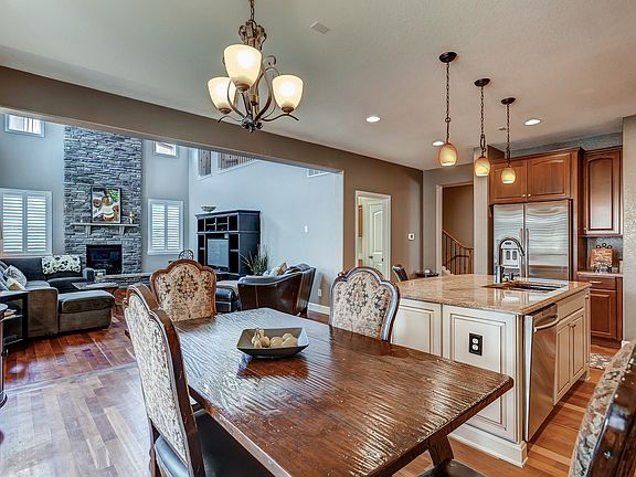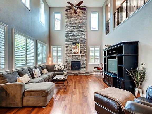 Gorgeous 3-story on a cul-de-sac in The Hearth, shows like a model home featuring 5 beds, 4 baths, great room, dining room, loft, kitchen, unfinished basement for future expansion & 3 car garage. Beautifully updated with special touches throughout. The central air conditioner, furnace and ceiling fans help keep this home comfortable all year long. Perfect for entertaining inside and out, this stunning home just needs you to call it yours. Many 'unseen' upgrades throughout. 2-story vaulted ceiling in the living room features many windows to let the natural light cascade in, plantation shutters, ceiling fan, gas fireplace w/stone surround & gorgeous hardwood floor. Welcoming from the moment you arrive. The neutral tones throughout make it easy to picture yourself calling this one yours. Bring your pickiest buyer. Close to dining, shopping, entertainment and other amenities. Meticulously maintained, Highest Quality and the Lowest priced home per square foot in Highlands Ranch!