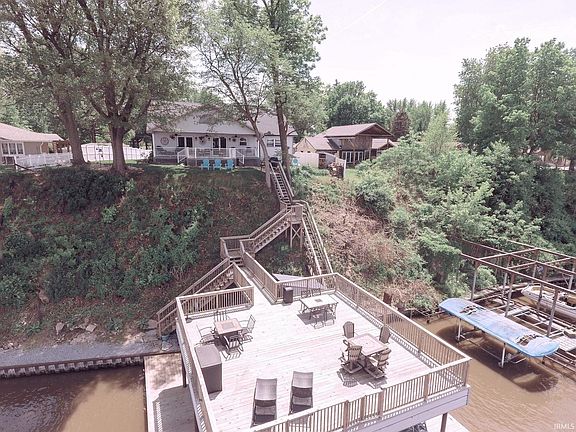 Updated main Lake Shafer home within walking distance to TCC golf course. Enjoy the beautiful lake views from the covered lakeside deck or head down to the party deck (30x30) that is on top of the double permanent covered boat lift. Also, at the waterfront is a swim deck, steel sea wall and 2 storage sheds. A well manicured lawn/landscaping is fenced in and includes a firepit and plenty of green space. Ample storage from the two 2 car garages, one of which is newer. Inside is open concept with cathedral ceilings and a split bedroom floor plan. A total of 4 bedrooms, 3 bathrooms, and 2050 square feet. Recent updates include the roof, flooring, large asphalt drive, permanent boat lift, detached 2 car garage (2021) with concrete board siding, appliance, Ac, furnace, and covered front and back decks are freshly painted. ONE OF THE BEST VIEWS ON LAKE SHAFER!