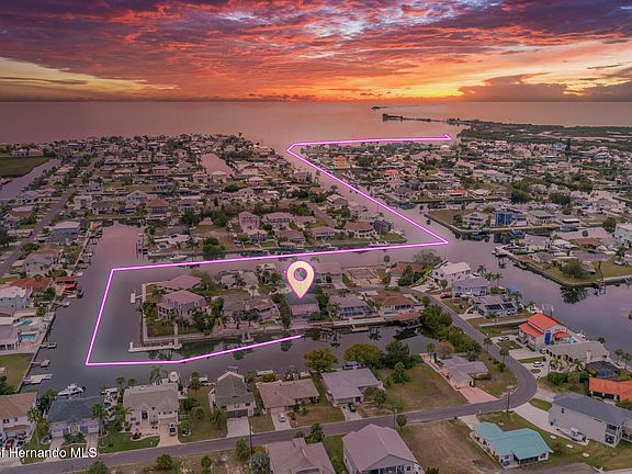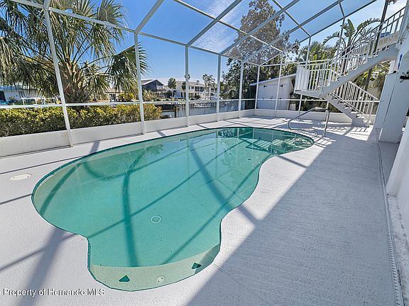 ELEVATED HOME, SCREENED IN POOL, 10K BOAT LIFT, FLOATING DOCK, ELEVATOR, SAILBOAT WATER, 2019 Roof, SPLIT FLOOR PLAN, 75 of waterfront and LOCATED ON ONE OF THE HIGHEST STREETS in Hernando Beach. What more could you ask for in a dream waterfront home in Hernando Beach! Situated on one of the highest streets in the area, this elevated property offers breathtaking water views and easy access to the water's edge. The expansive 7,500 sq. ft. lot provides ample space for relaxation and recreation. This exceptional home features a boat lift with shore power at the water's edge, ideal for large boats, and has new lift motors to ensure smooth operation. Home is equipped with an elevator for easy access to the upper level, this home combines convenience with luxury. Enjoy Florida's year-round sunshine in your own private pool, perfect for lounging and entertaining. Inside, the home boasts beautiful wood flooring in the living areas and new carpet in the bedrooms. The thoughtful split floor plan offers ultimate privacy, while the updated master bath includes sleek quartz countertops and a spacious walk-in shower. The property is move-in ready, and much of the furniture is available to convey with the home. With no HOA fees and no short-term rental restrictions, this is an exceptional opportunity for both personal enjoyment and investment potential. Located on a deep canal, this home offers direct access to the water, ideal for boating, fishing, and outdoor adventures. This is a rare find—what more could you ask for?