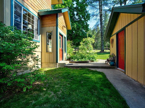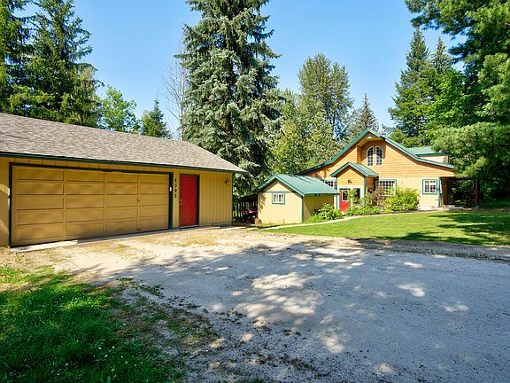 Charming home in the county with 2 car garage that includes an office room. The entry area leads to the living room with vaulted ceilings and access to the covered deck that stretched the length of the house and looks out over the back yard. Open floor plan with a newer kitchen, center island with additional sink, and SS appliances. There are 3 bedrooms (2 on the main level) and 2 bathrooms (one is across from the front door entry in the laundry room building). Outdoor enjoyment with mature trees, storage building & plenty of room for a shop or accessory dwelling unit. Energy efficient wood floor heat with propane backup. Only 4 miles to Sandpoint with county maintained access. For water enjoyment, the lake boat launch & beach are just up the road at Springy Point!