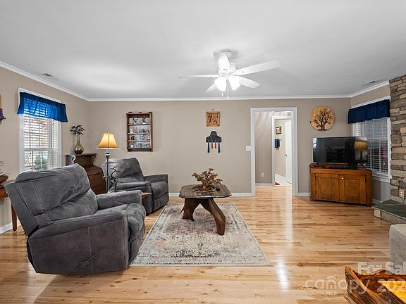 Located in a serene setting, this one story gem offers lake access, year round views, a covered rocking chair front porch and a private backyard oasis. Once inside you'll find an open floor plan with wood floor throughout living space, a charming fireplace and large windows overlooking both front and backyards. The kitchen which is open to the dining area boasts stainless steel appliances, pantry, ample cabinet space and a breakfast bar. This home offers a split bedroom floor plan. Upstairs you'll find an oversized bonus room great for a playroom, office, art room or additional living space. The backyard is a perfect place to relax and entertain with the above ground pool (new pump/rails 2023), screened in porch, deck, tiki bar w/electric & stools and the yard is fully fenced for privacy. There is an additional detached carport large enough to store multiple cars, boats, RVs or heavy equipment with a second driveway (gravel). Lots of Newness- see attached upgrade list.