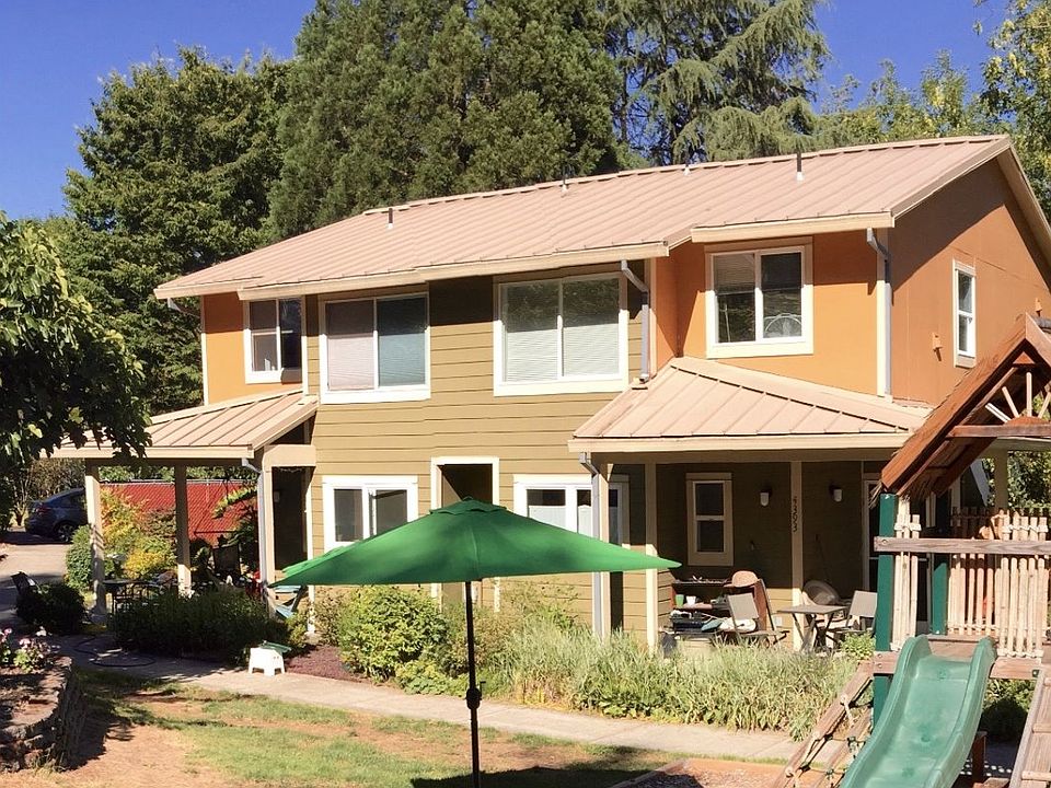 Immaculate "co-housing" condo in Cascadia Commons. Community living at its best nestled on a beautiful 2.86 acre parcel which includes a wetland. Very light and bright w/great-room floorplan. Wonderful balcony for relaxation or entertaining overlooking landscaped common area. Walk to busline, restaurants and shopping.