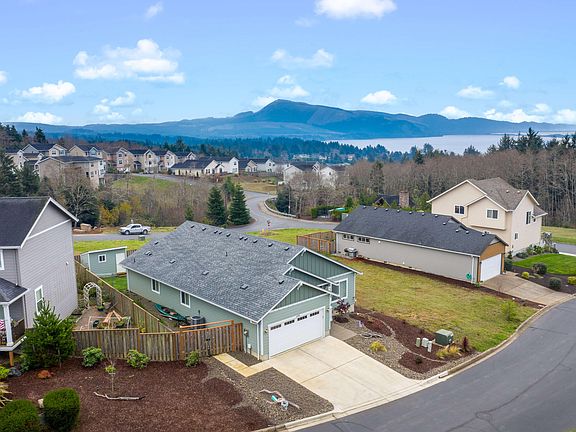 ONE LEVEL LUXURY 4 bdrm with soaring vaulted ceiling, LVP flooring in most rooms, quartz kitchen with island & upscale stainless appliances, soft close cabinets. Covered patio with hot tub, great fenced yard with large tool shed, raised garden bed & dog run (or parking for small boat). Ocean view from front & back. Heat pump with cooling, efficient heat pump water heater. Great location with little traffic, located near forest trail access. Custom built home.