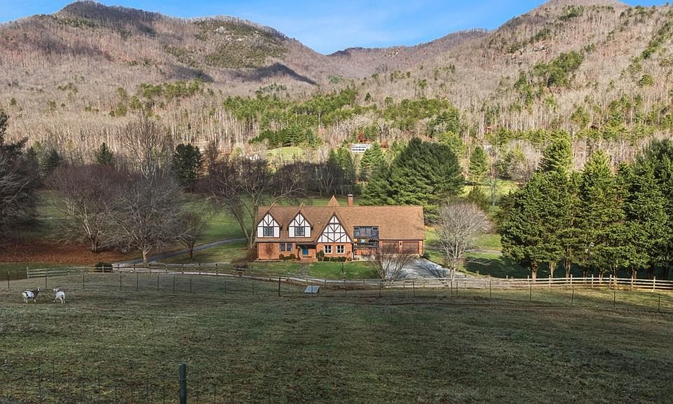 Tessentee Creek - Grand Estate—41.47 pristine, unrestricted acres in the heart of the Appalachian Mountains near Franklin and Highlands, NC. This private retreat blends classic Tudor style with extraordinary natural beauty, offering over 1,300 ft of bold trout creek frontage and stunning views of mountains, rock outcroppings, open fields, and fenced pasture. The 3-bed, 3.5-bath home features hardwood floors throughout and a vaulted living room centered around a Rumford fireplace, perfect for entertaining. The spacious kitchen includes granite countertops, a commercial gas range, island, pantries, and a sunny south-facing breakfast nook. The main-level primary ensuite is generously sized with a tile bath. Upstairs are two bedrooms and a tile bath, including one oversized room ideal for multiple beds or a sitting area. The lower level offers a TV/rec room, full bath, laundry, and a workshop large enough for ATVs and equipment, plus a terrace overlooking pasture rolling toward the creek and mountains.Completing the estate is a nearly new tiny home guest house tucked privately into the woods, barn, metal equipment building, backup generator and a creekfront picnic area.