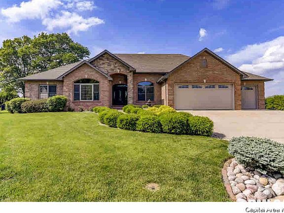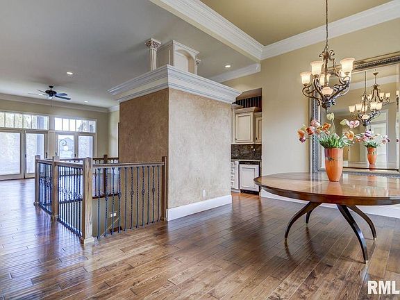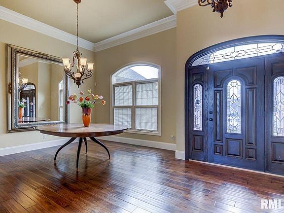 One of a kind, custom built all brick 4BR/3.5BA ranch in Pleasant Plains schools w 4 car garage! Top of the line finishes include: rich scraped HW flooring, thick crown molding, beautiful built-ins, wet bar in LR for entertaining, gorgeous kitchen w island & peninsula bar, Viking range & Sub Zero. Sunroom leads to covered patio. Custom closets throughout. Fin LL w true theater room, wet bar, library, 2BR/1BA, game room & egress to garage! Brand new sump pump installed w full 3 year warranty!
