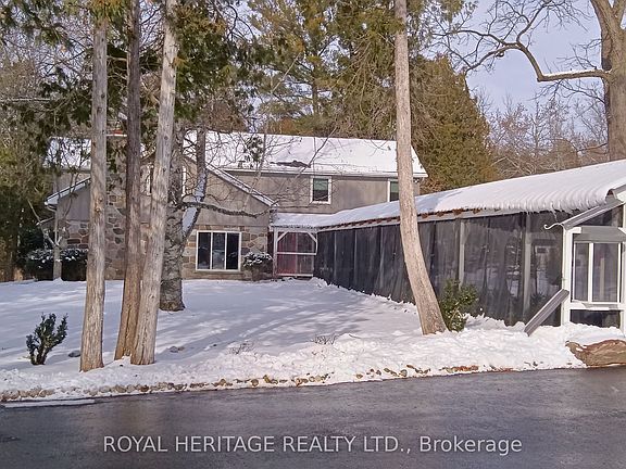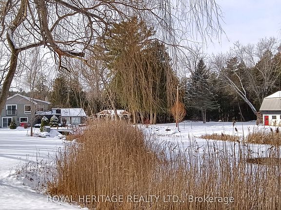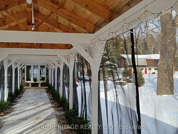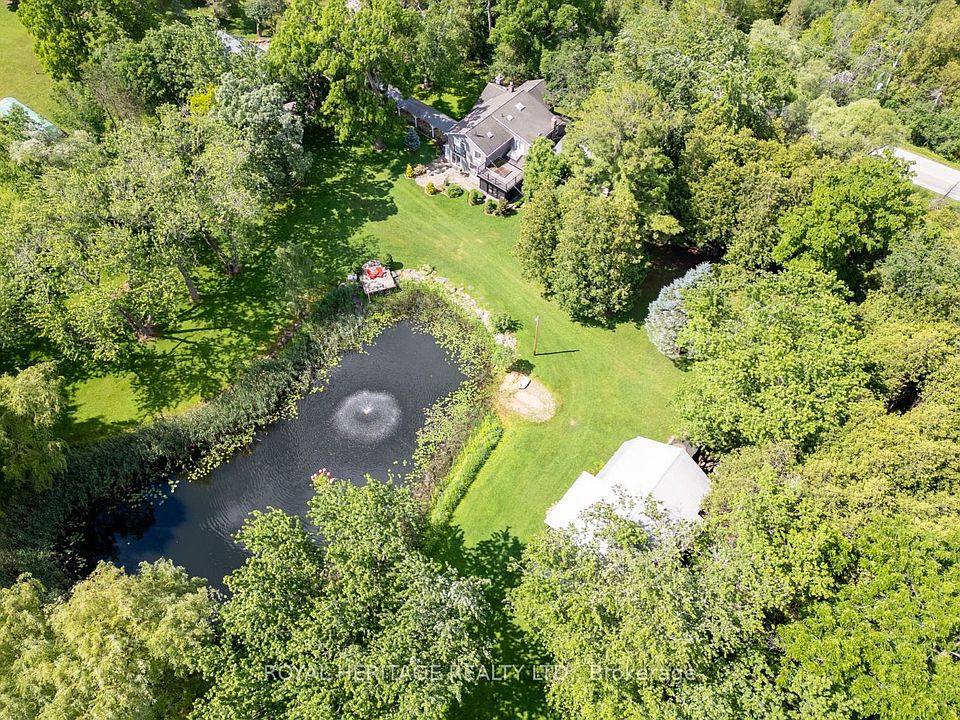 Welcome to this A One-of-a-Kind Private Country Estate. This extraordinary modern farmhouse is nestled on 7.91 acres, surrounded by nature and featuring a protected pond that attracts local wildlife. *Bonus* Detached 3-car garage, has a separate Guest Studio featuring an open concept living, dining, kitchen area, 3-piece bath, and walk-out to a private deck ideal for in-laws, or guests.The property offers a rare blend of privacy, elegance, and opportunity. The Main house is Over 3,000 Sq.Ft. of living space and includes 3 fireplaces , and 5 skylights. The large chefs kitchen has a center island and granite counters making it the perfect space for hosting many memorable gatherings.The large family room is wired for surround sound, has a wet bar and walk-out to an enclosed solarium. The show-stopping great room has beamed cathedral ceilings and walk-out to the patio. The modern glass stairway and skylight lead to the upper level where the luxurious primary bedroom has heated floors and a 5-piece spa ensuite, including a soaker tub. The 2nd bedroom has a walk-out to a private sundeck overlooking the tranquil pond. The main house is heated with an Energy-efficient geothermal heating/cooling system (2009) +propane.The barn is equipped with hydro, paddocks, a 2nd floor paradise for workshop pros, and an insulated art studio with views of the pond. The property is zoned agricultural and beautifully landscaped with perennial gardens, greenhouse, apple, pear, cedar trees plus private, peaceful walking trails. Located directly across from the Claremont Nature Centre and just minutes to Hwy 407, 412, and all minutes from city amenities. This estate offers a peaceful retreat without sacrificing convenience. Endless Possibilities, perfect for a multi-generational family, boutique event venue, destination dining experience or simply your own private escape from city congestion. Don't miss this opportunity to own a truly special property blending historic charm with modern luxury.