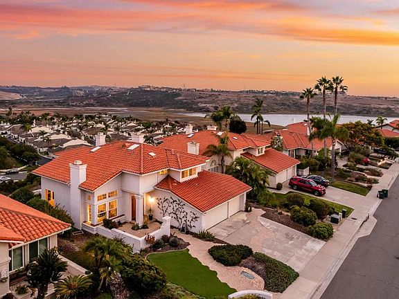 Experience unrivaled 180-degree views of Agua Hedionda Lagoon in this enchanting Carlsbad residence. Set on an elevated lot in the desirable Capri neighborhood, this home combines timeless elegance with breathtaking scenery, showcasing panoramic mountain & lagoon vistas. Main level BR & full BA. Step inside through a grand double-door entry, where freshly painted interiors, rich hardwood floors & soaring 2-story ceilings create a bright, welcoming ambiance. The formal living room, centered around an elegant fireplace, flows seamlessly into an adjacent dining room with picture windows framing endless views. The open-concept kitchen & family room offer a perfect space for gathering, equipped w/ SS appliances, a center island, bar seating & breakfast nook with sit down lagoon views. The family room, with a cozy fireplace & sliding glass doors, extends the living space outdoors for effortless indoor-outdoor living. Upstairs features brand new carpet. The expansive primary suite offers ocean & lagoon views, a cozy fireplace, private balcony & spa-inspired BA with dual sinks, walk-in shower & soaking tub. An adjoining retreat offers flexibility as an office, nursery, or optional 4th BR with ocean views. Another guest BR & full BA complete this level. The backyard is a serene oasis perfect for entertaining, al fresco dining, or simply enjoying coastal breezes with a backdrop of mountain and lagoon views. With quick access to I-5 & 78 freeway, highly-rated Carlsbad schools, & more, enjoy the coastal lifestyle with nearby beaches, championship golf courses, Carlsbad Village, boutique shopping & fine dining—all just a short drive away. Experience the best of Carlsbad’s coastal charm, where serenity meets easy access to everything you need. Welcome home!