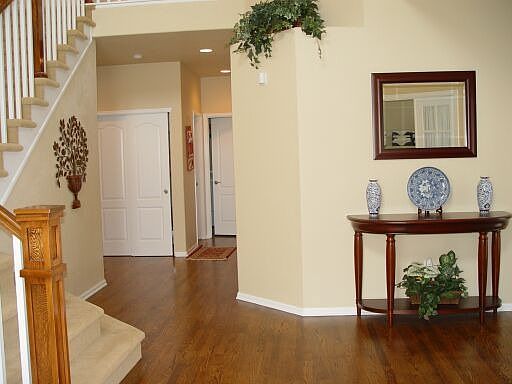 Just one year new with all bells and whistles. Grand foyer, formal dining room, main floor study, master bedroom with retreat. High and vaulted ceilings. Cherry cabinet throughout, extended hardwood floors, nice carpet, slab granite kitchen countertop, stainless steel appliances.