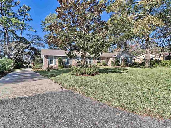 Located in desirable and unique Cedar Creek Village, this well-kept 3 bedroom, 2 1/2 bath, all brick home is situated on .40 acres. Cedar Creek Village is an Intracoastal Waterway community consisting of custom homes, each expressing its own character, having side or rear loading garages and spacious yards. The HOA allows homeowners to bring boats with accepted guidelines. The home is surrounded by mature trees and landscaping with front and backyard fountains. Azaleas and dogwood trees create a small parklike setting on the front side of the home. The 8x12 storage building has a recently added extended roof which allows for outdoor dining or grilling, while the backyard patio boasts outdoor string lighting for nighttime enjoyment. The home features a rear loading garage having approximately 740 square feet and its own 1/2 bath. Inside features include custom trimmed windows, double french doors to the screened back porch, a skylight in the living room, brick fireplace with gas logs, and a sitting or office nook off the breakfast dining area. Located within minutes to the beach, marinas, restaurants and the quaint Little River fishing village.