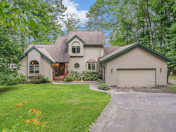 Three floors of living space in this 5 bed, 4 bath home on peaceful Perch Lake. Room to roam while enjoying an expansive deck overlooking the lake. Main floor master suite with its own private deck plus a tiled bathroom with jet tub and roomy walk-in closet. Large kitchen and dining area, living room, den with fireplace on main floor. Two bedrooms with full bathroom on upper level. Fourth and fifth bedroom and full bathroom on lower walk out level. Lower level also includes separate kitchen area and family room. Fifth bedroom currently being used as playroom. EV plug-in in garage. Beautifully landscaped yard and 86 feet of private lake frontage. Close to Gaylord and all that is great about living in Northern Michigan.