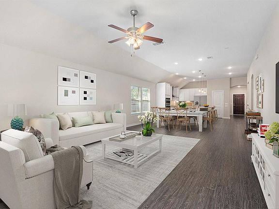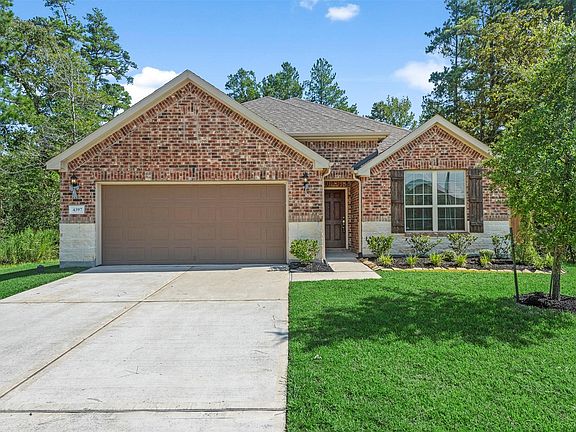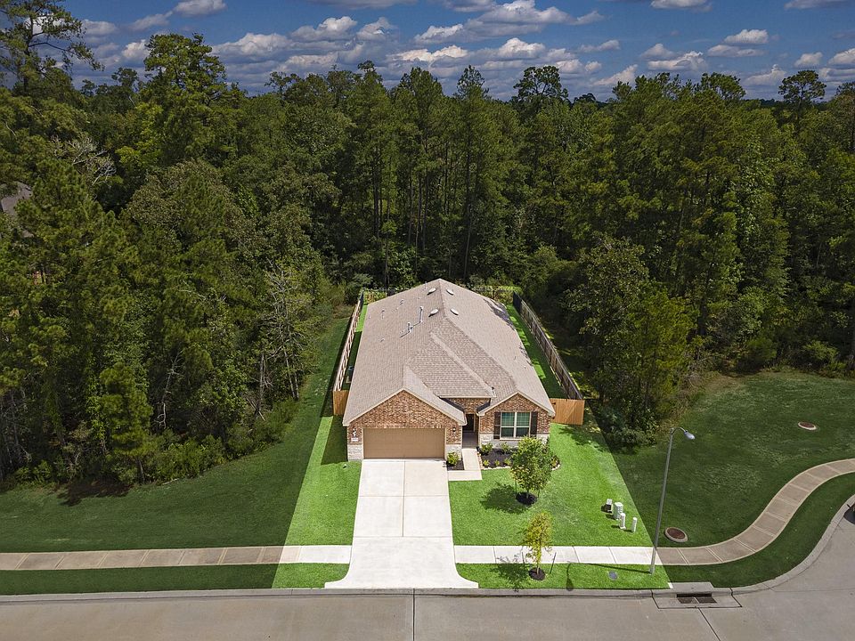 Sprawling 1 story nestled in Harmony Village on a cul-de-sac with NO BACK OR SIDE NEIGHBORS offers an amazingly quiet, private location. Features 4 bedrooms, 3 full baths, on trend island kitchen with bar seating & dining area open to the huge family room - a design perfect for family gatherings and entertaining. Mud area and built in desk/office area off the kitchen. Wood look tile flooring in main living areas. Gourmet island kitchen w/granite counters, gas cooking, stainless steel appliances, pendant lighting & pretty backsplash. Large primary bedroom w/extended bay window & spa-like ensuite with soaking tub, oversized frame less shower, dual vanities and two walk-in closets. Large yard with covered patio, wifi sprinklers & a peaceful wooded view. Close to neighborhood shopping, restaurants, grocery & schools. Easy access to 99, 45, Hardy, The Woodlands. Harmony offers 2 pools, basketball/tennis courts, splash pads, walking trails, gym, community center, parks. Floor plan attached.