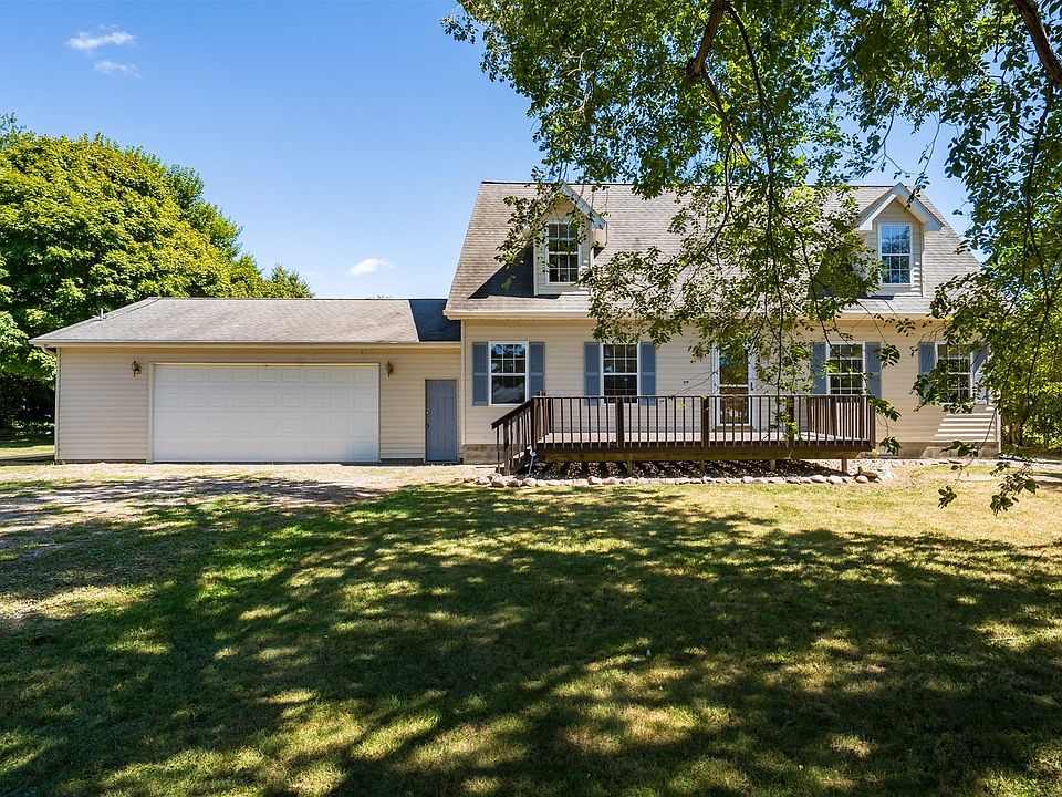 Country living close to LeRoy on scenic Sabina Road! Set on 1.5 acres, this well-kept home features an oversized attached 2-car garage. Inside, hardwood floors grace the living room and the dining/kitchen combo, where quality cabinetry and ample counter space open to an eat-in area perfect for gatherings. The main-floor primary suite offers a walk-in closet and double-vanity bath, with brand-new LVP in the suite and across the entire upper level. Upstairs, you'll find three bedrooms and a full bath-including two notably spacious bedrooms, each with its own walk-in closet for exceptional storage and flexibility. Recent updates include a rebuilt main staircase (2024) and fresh interior paint throughout. Outdoor living shines with a welcoming front porch, back patio, above-ground pool, and a chicken coop. Two outbuildings at the back of the property (conveying as-is) add storage or hobby space, and the full unfinished basement provides room to expand. Enjoy the space you want with the convenience you need-welcome home.