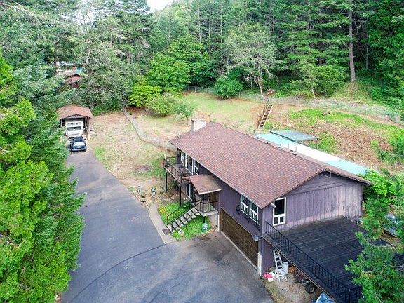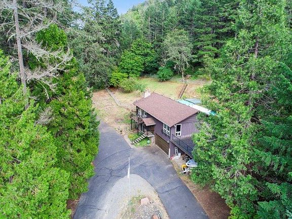 Enjoy nearly 5 wooded acres close to town and backed by BLM! This home boasts a generous 1,976 sq. ft. with 2 large bedrooms and 2 bathrooms. The bathroom in the master bedroom has recently been beautifully remodeled. Lots of natural light and vaulted ceilings. Plenty of parking available in the garage, attached carport and circle driveway. An additional covered area is available for RV or Boat Storage. This home sits at the end of a shared driveway. Perfect set up for peaceful country living. This home is ready for its new owners, schedule your own private tour today!