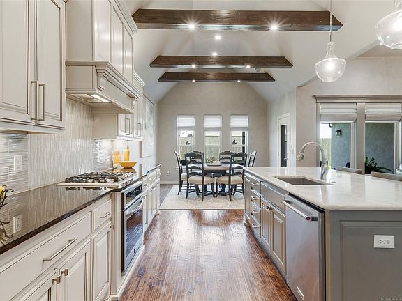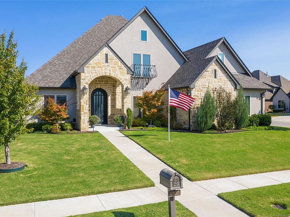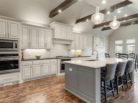 Beautiful Transitional Model Home! Marble island, granite thru out, designer finishes, hand-scraped hardwoods & plantation shutters. Vaulted & beamed Kitchen features custom cabinetry, gas cooktop, 2 ovens, walk-in pantry & granite butlers pantry. Fabulous layout w/2 beds down & 2 up all w/private granite baths. Spa-inspired Master w/dressing closet leading to granite laundry room. Vaulted game room. Separate Home Theater features tiered floor & designer carpet. Covered patio & attached shed w/power. Neighborhood amenities include pool, park, tennis court & ponds. 2020-10-12